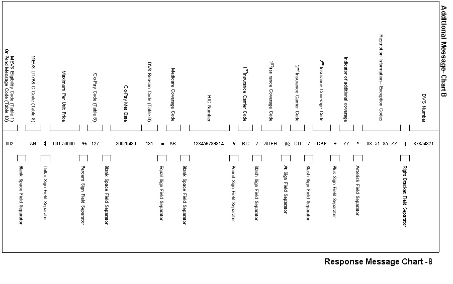 Reject codes may appear in one or more of the following fields: NCPDP Reject Codes will be returned in the Reject Code (511-FB) field. MEVS Accepted and Denial Codes listed in Table 1 (page 9.0.1) and Table 2 (page 10.0.1), Rx Denial codes listed in Table 7 (page 12.0.1), UT/PC Codes listed in Table 8 (page 13.0.1), DVS codes listed in Table 9 (page 14.0.1), and the Pend Reason Codes listed in Table 10 (page 15.0.1) will be returned in the Additional Message Info (526-FQ) field. If a claim is rejected, an NCPDP Reject Code will always be returned in the Reject Code (511-FB) field and may have a corresponding MEVS Code placed in the Additional Message Info (526-FQ) field to further clarify the error. Both fields should always be reviewed. The valid NCPDP and MEVS Codes can be found in the tables at the end of this manual.